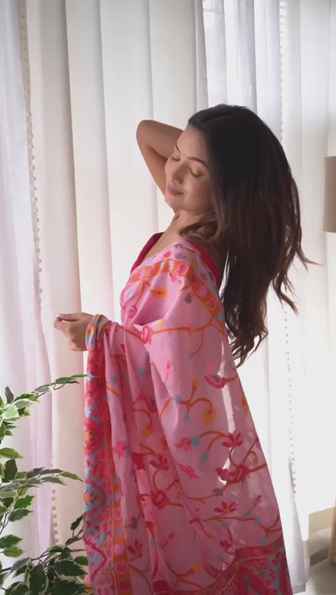 Banarasi Silk Saree Printed– Rich Fabric, Royal Look pink saree