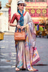 Beauteous Grey Digital Printed Satin Silk Saree With Demesne Blouse Piece