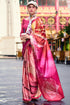 Blooming Dark Pink Digital Printed Satin Silk Saree With Hypnotic Blouse Piece