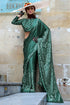 Conflate Dark Green Digital Printed Satin Silk Saree With Angelic Blouse Piece