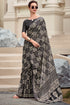 Cynosure Black Printed Mul Cotton Saree With Beleaguer Blouse Piece