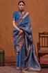 Dazzling Navy Blue Kanjivaram Silk Saree With Deserving Blouse Piece