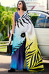 Evocative Yellow and Blue Digital Printed Satin Silk Saree With Susurrous Blouse Piece