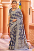 Fancifull Navy Blue Lucknowi work Silk Saree With Demanding Blouse Piece