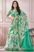 Fugacious Green Digital Printed Soft Silk Saree With Imbrication Blouse Piece