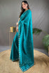 Groovy Firozi Embroidery Work Soft Silk Saree With Stunner Blouse Piece