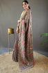 Magnetic Grey Embroidery Work Tussar Silk Saree With Staggering Blouse Piece