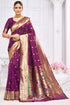Majesty Wine Paithani Silk Saree With Blissful Blouse Piece