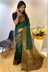 Murmurous Dark Green Printed Soft Chanderi Silk Saree With Efflorescence Blouse Piece