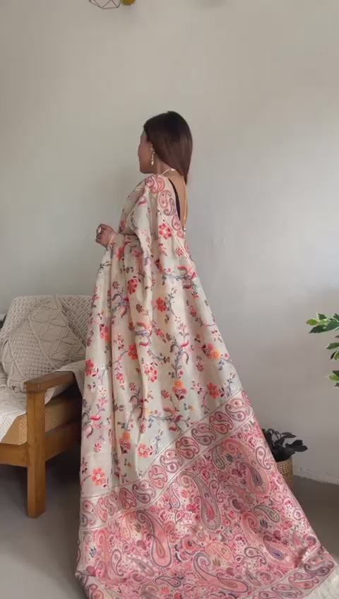Festive Wear Banarasi Saree in Pure Soft Silk Cream White
