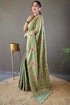Quintessential Green Embroidery Work Tussar Silk Saree With Susurrous Blouse Piece