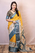 Symmetrical Mustard Digital Printed Dola Silk Saree With Transcendent Blouse Piece