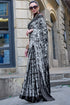 Unique Black and White Digital Printed Satin Silk Saree With Beautiful Blouse Piece