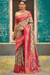 Whimsical Beige and Dark Pink Kanjivaram Silk Saree With Vibrant Blouse Piece